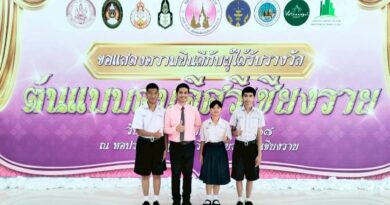 เด็กชาย ภูริวัฒน์ ฉันทะ ชั้นมัธยมศึกษาปีที่ 1 และนางสาววีรดา ใจยา ชั้นมัธยมศึกษาปีที่ 5 ณ หอประชุมอำเภอพาน จังหวัดเชียงราย