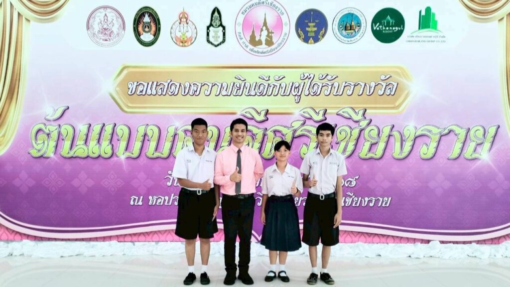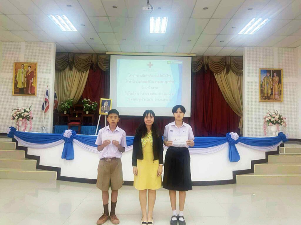 เด็กชาย ภูริวัฒน์ ฉันทะ ชั้นมัธยมศึกษาปีที่ 1 และนางสาววีรดา ใจยา ชั้นมัธยมศึกษาปีที่ 5 ณ หอประชุมอำเภอพาน จังหวัดเชียงราย - เข้ารับรางวัลเกียรติยศ ต้นแบบคนดีศรีเชียงราย